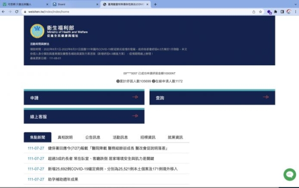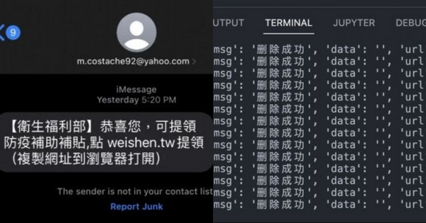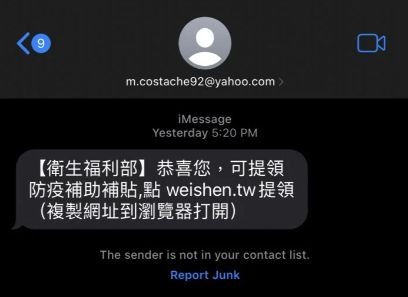 詐騙集團手段層出不窮,近日開始出現「【衛生福利部】提領防疫補助」的詐騙簡訊