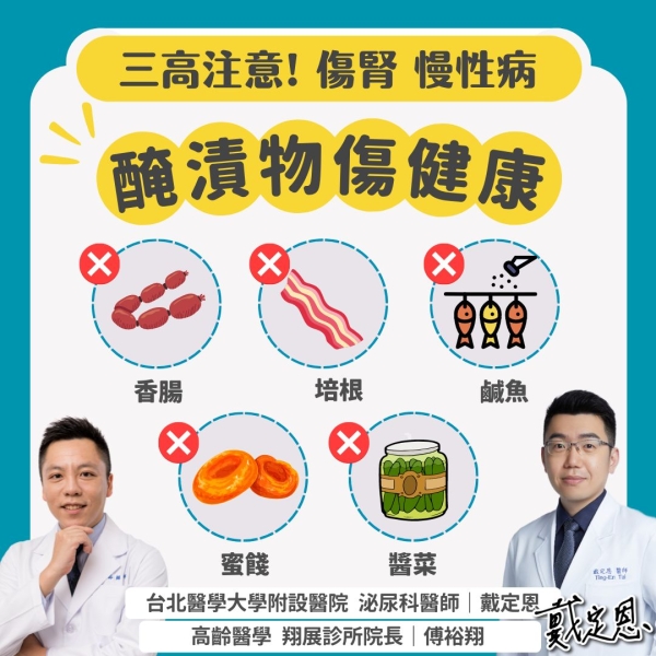 內科醫師傅裕翔在粉專提到,診間常會奉獻三高族群、慢性病患者及長者盡量少碰醃漬物。