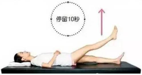 慢慢抬高右腿,在高處停留10秒後慢慢放下。
