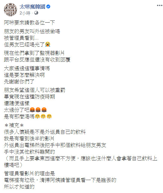 憤而請朋友在臉書粉絲團「太咪瘋韓國」,