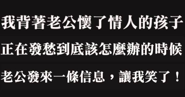 他說會對我負責的,但是後來的倆月,我們很少見面,每次找他,他都說忙。結果突然有一天我發現自己懷孕了,可是我還有個老公呢?被他知道怎麼辦啊?正在我發愁的時候,老公突然發來一條資訊。我笑了!