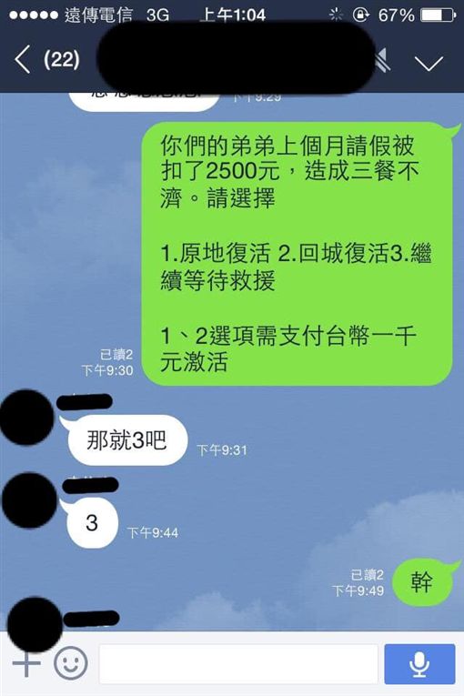 只見他說:「妳們的弟弟上個月請假被扣了2500元,造成三餐不濟。」