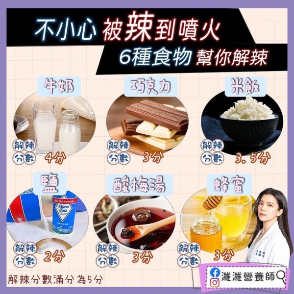 蔡濰安介紹6種解辣食物,推薦大家若不小心被辣到可嘗試: