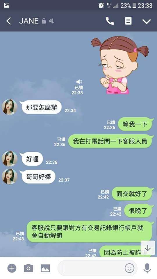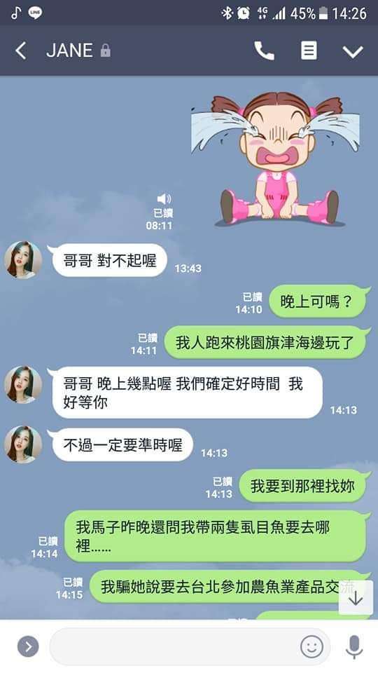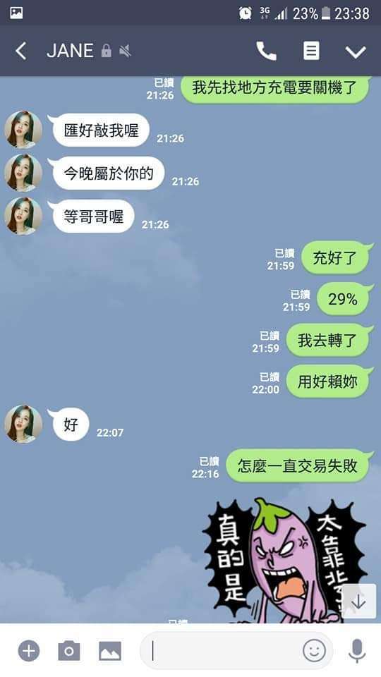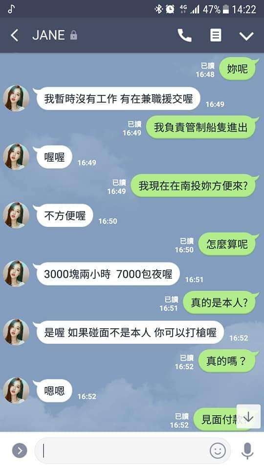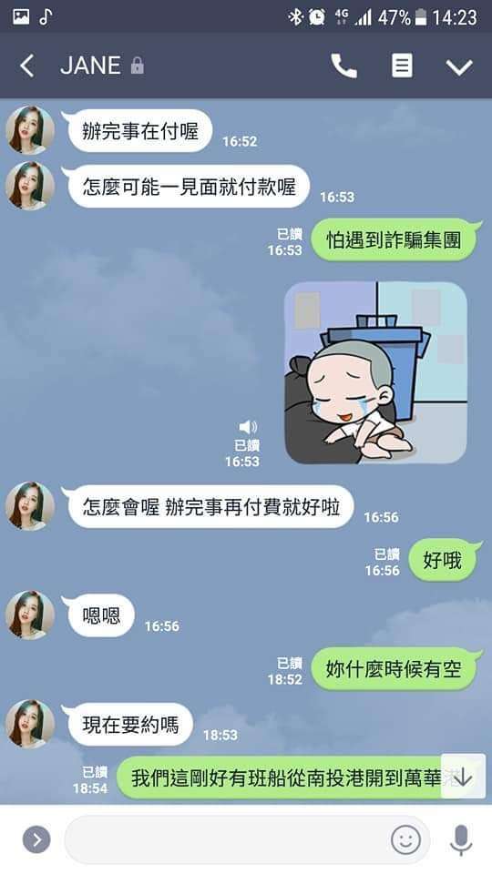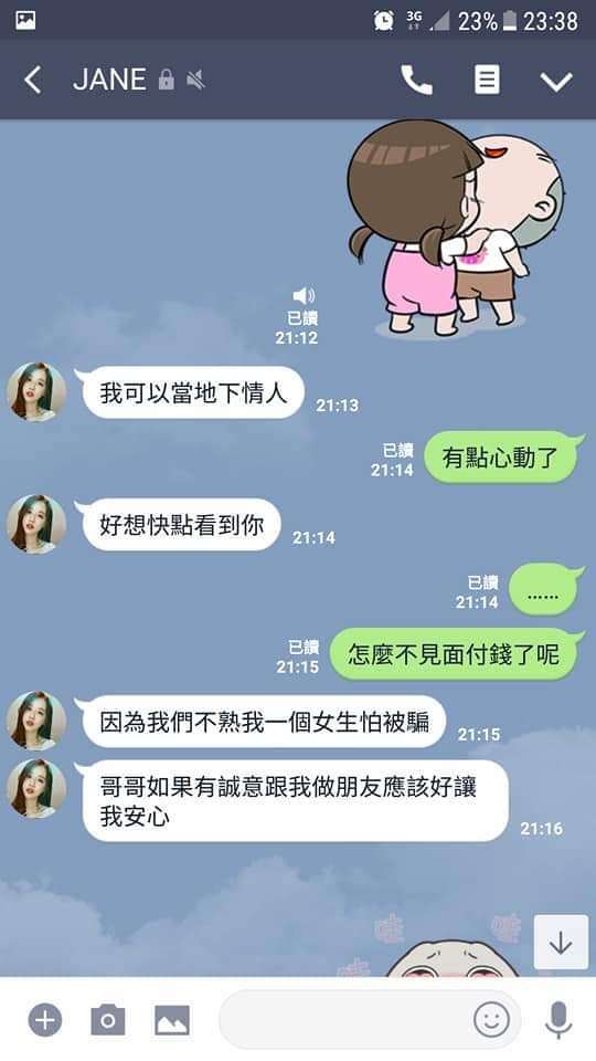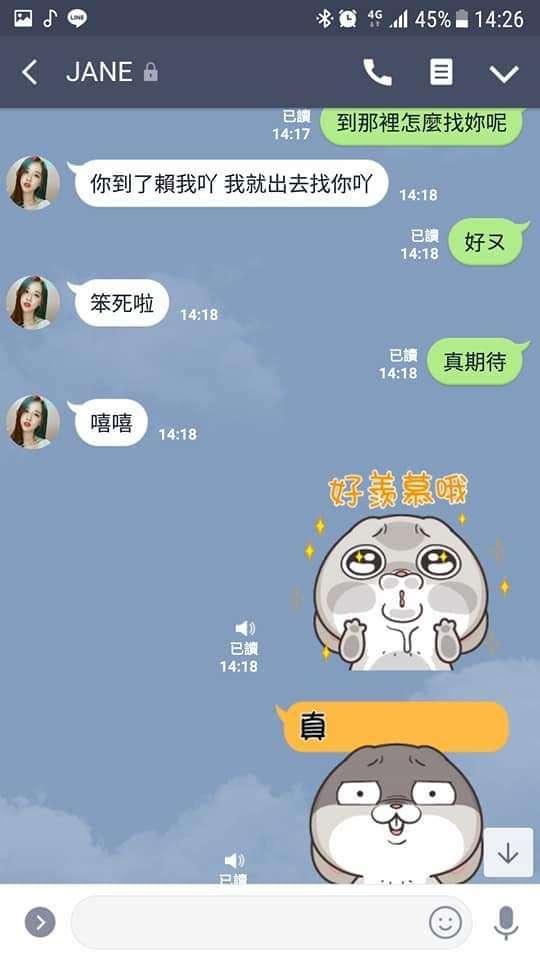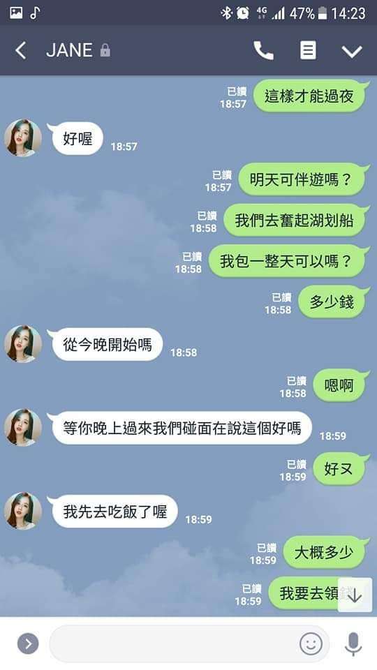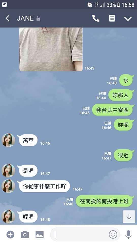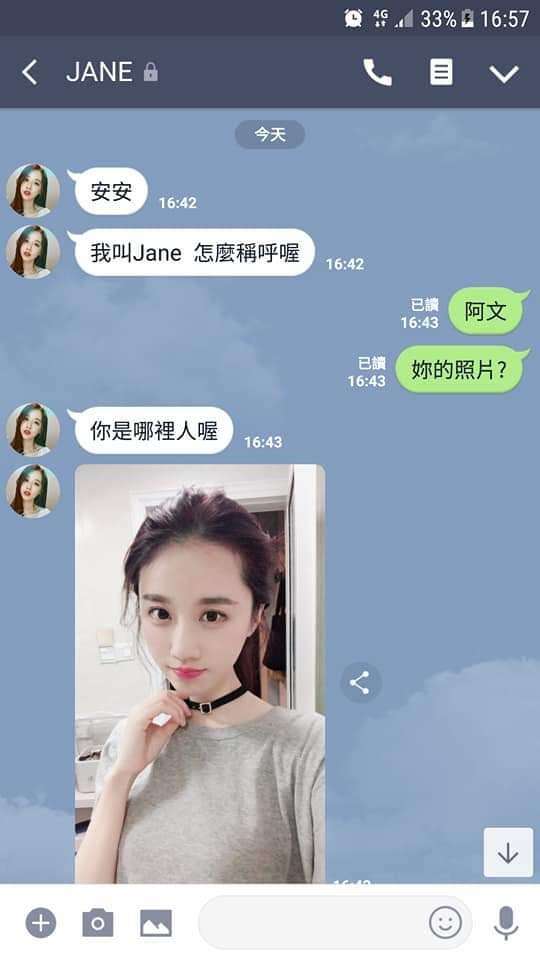 ▼這位自稱Jane的美女主動加原po的 LINE,