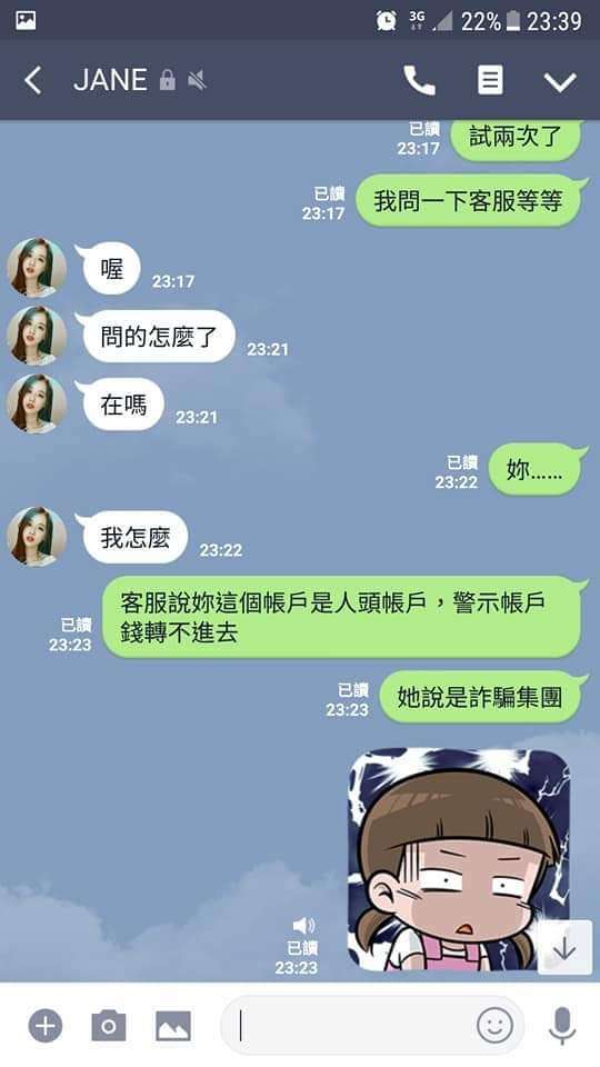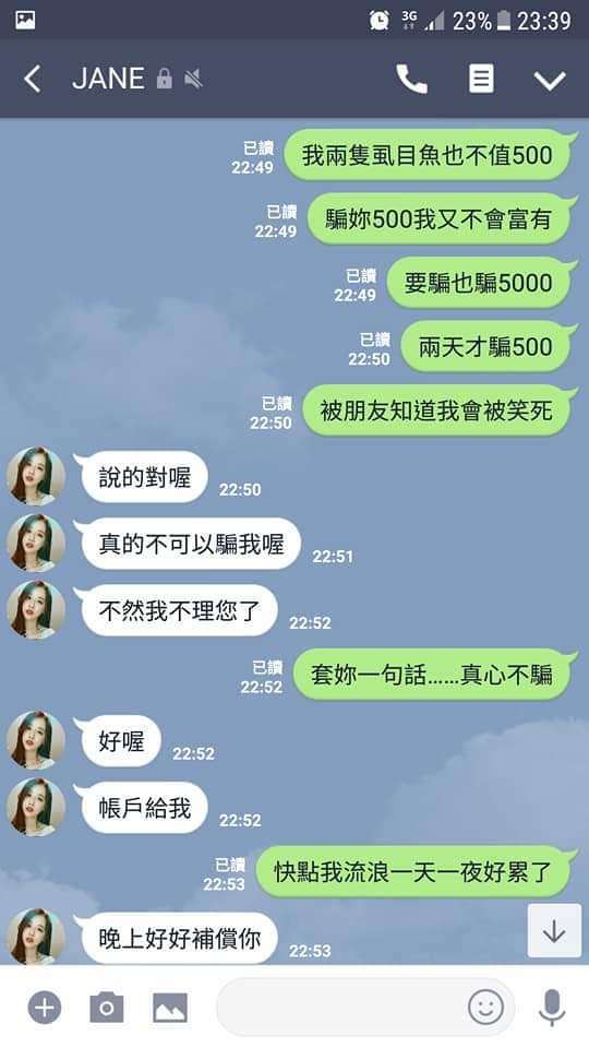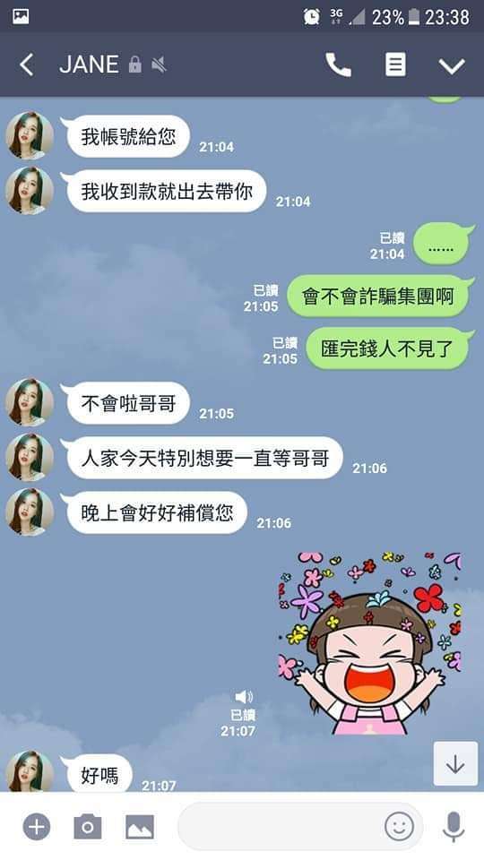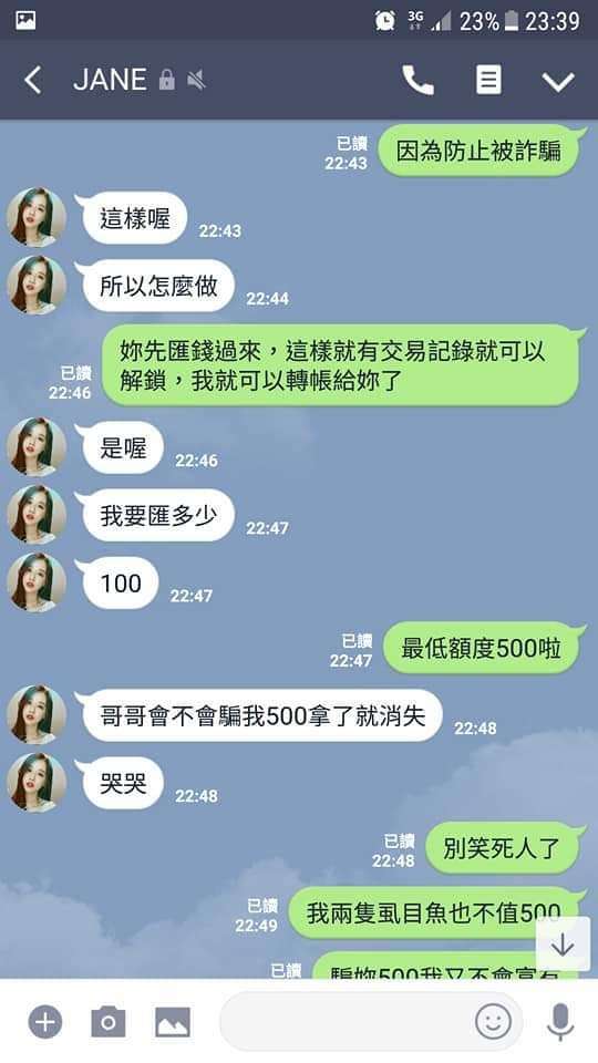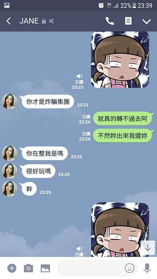 原PO在聊了幾句後就知道對方是詐. 騙集團了,