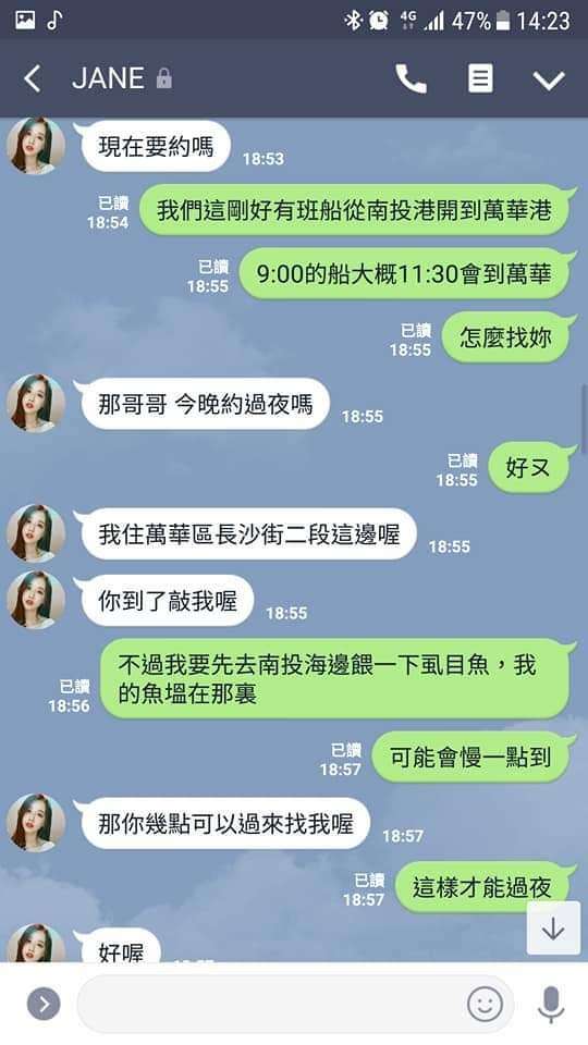 ▼當原po首先出招,說自己在「南投的南投港」上班後對方卻沒有發現異狀,就展開了「反詐. 騙釣魚」行動。
