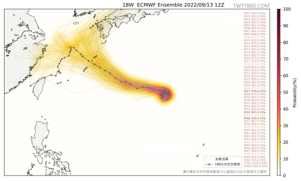 目前路徑預測是向西朝日本南方海面前進,不過不排除會以下墜球方式接近台灣。