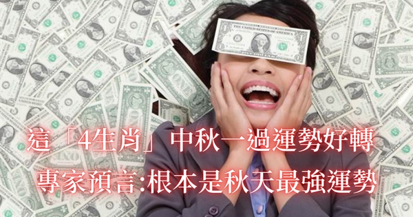 星座命理專家艾菲爾指出,中秋過後有4個生肖「財運大發」