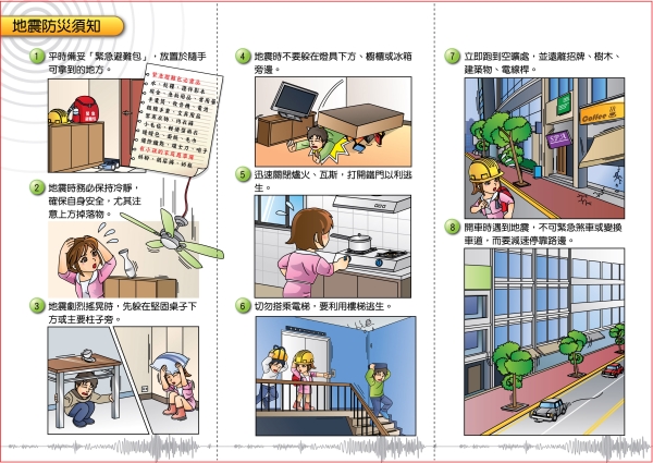 1. 當開始搖晃時,應優先保護自己,千萬不要慌亂逃出戶外。