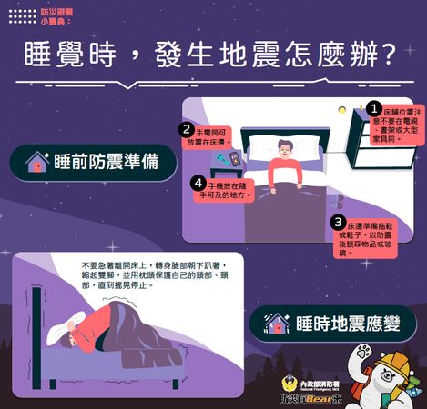 請繼續待在床上、保持警覺即可,直至地震結束確認安全為止。