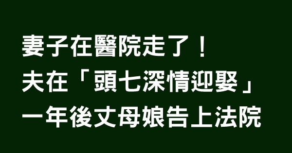 孰料婚禮距今1年多,男子卻突然收到了「丈母娘」寄來的律師函,原因是妻子的母親控訴徐男,遲遲未將女兒的骨灰下葬,且網路上依舊放送著當初「殯儀館婚禮」的影片,讓丈母娘深深覺得女兒受到打擾、無法安息,以「侵犯安寧權」為由提出告訴,希望維護往生者的權益。