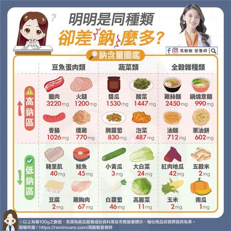 如此高鹽分的醃製讓整體鈉含量提升,所以建議平常少吃加工品、減少醬料使用