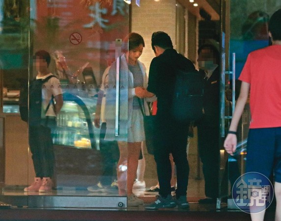 直到一小時後,兩人才雙雙走出飯店,見到雨太大,索性又跑回去逛逛商店,