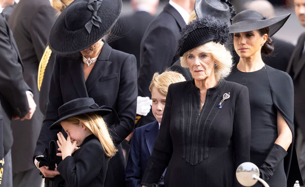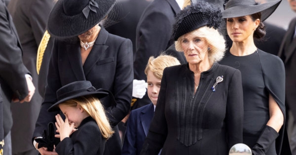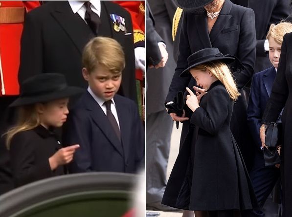 當她發現祖母卡蜜拉(Camilla)、媽媽凱特(Kate Middleton)向靈柩行屈膝禮時