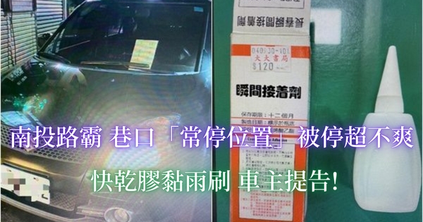 氣得用快乾膠水塗抹在該輛小客車的後擋風玻璃、雨刷、後車廂蓋及後保險桿上