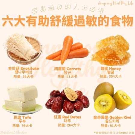 香港營養師Charlene Wong分享了6種有助於舒緩過敏的食物