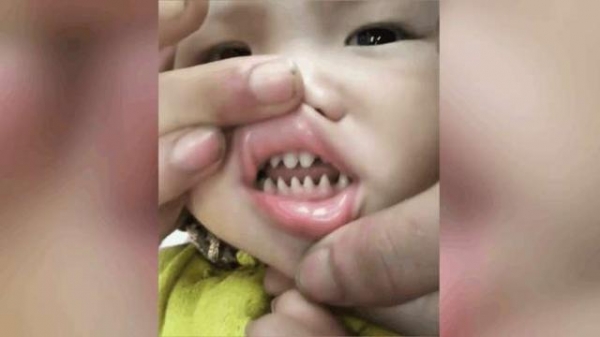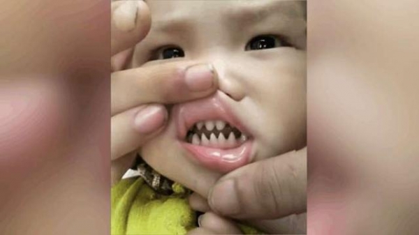 在網上傳播這樣一個影片,在影片中,實拍寶寶這一副鯊魚牙齒,太有個性,網友:我就曉得你兒子有貴族血緣。長大能夠拍恐懼片了,都不用化裝戴假牙。你那手指甲那麼臟,咋好意義摸孩子嘴的?