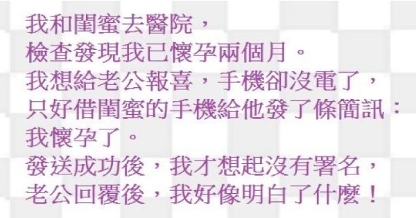 只好借閨蜜的手機給他發了條簡訊:我懷孕了。