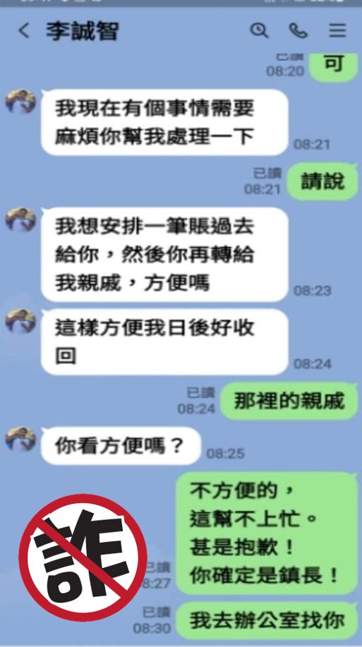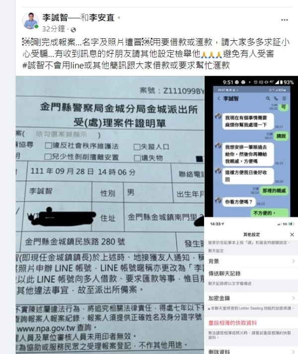 另外金城鎮及金湖鎮兩鎮長也收到頭像、名字遭盜用,向轄內里長借錢的情形。