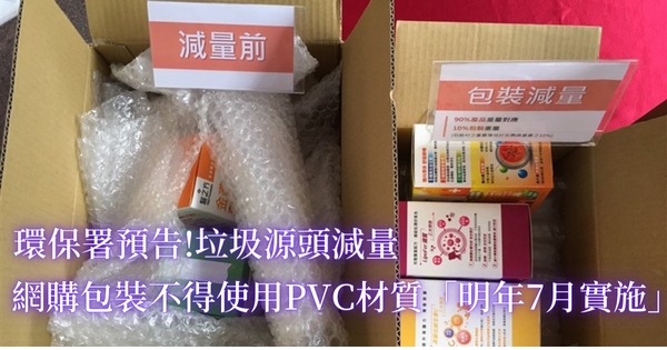 ▲為了從源頭將包材廢棄物減量,環保署預告,明年7月起,網購包裝不得使用PVC材質。(圖/環保署提供)