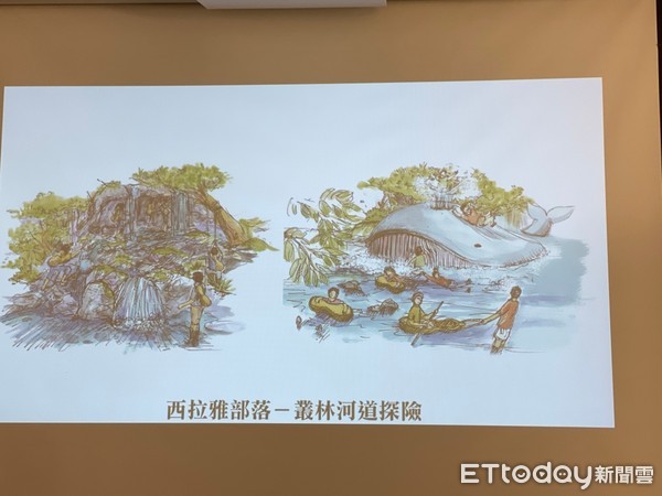 至於其他部落園區及海盜船園區,則會有叢林河道探險等活動,還會有台灣特色小吃店、傳統三合院民宿、地底遺址與神秘隧道、海底隧道太空梭、鯨魚狂想曲、海上水幕步道等設施,民眾可在部落內玩實境逃脫遊戲,考驗大家團隊合作的能力,最後園區還提供「未來明信片」服務,可以寄送給未來20年後的自己或是親友,而園區還會結合公益活動,將有一個海底沈船做為許願池,所收到的金錢將會捐給基金會,照顧偏鄉弱勢孩童,也會結合周邊農家實際幫助到社會,目前預計將會在2025年開張,門票也會相當親民。