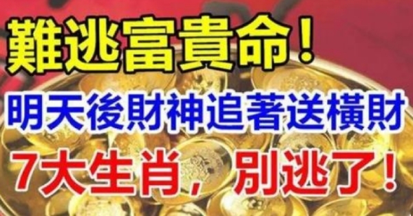 生肖牛是一個低調、謙遜的屬相,不喜歡與人爭辯,做事情也很認真,這樣的人命裡福氣多,只不過時機未到,好日子也不會那麼快出現。而在明天後生肖牛將得財神眷顧,帶著大筆的橫財自動上門,讓屬牛的人能大賺一筆,從此過上富貴日子。
