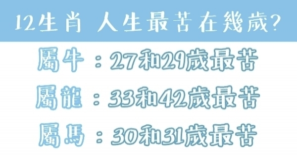所以屬馬人在30和31歲的「鼠牛年」是他們人生最苦的時候,