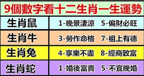 9:一生衣食無憂,年老威望高。