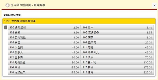 看好多明尼加最具有奪冠潛力,賠率僅2.60,