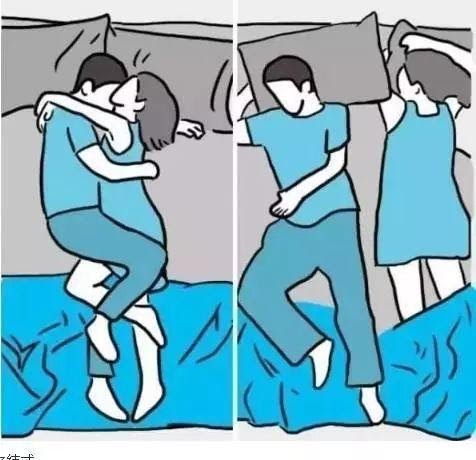 這種睡姿是糾纏蜜月式演變而來的,感覺睡姿不舒服,就會自動分開,據說只有8%的夫妻會採用這種睡姿,感情一般都不錯,因為懂得收放自如,既甜蜜又能給彼此自由。