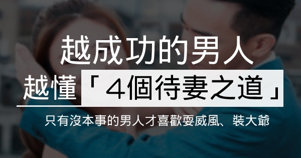 而越是有本事的男人,越能顧好家、在職場叱吒風雲,因為他們都懂「4個待妻之道」。