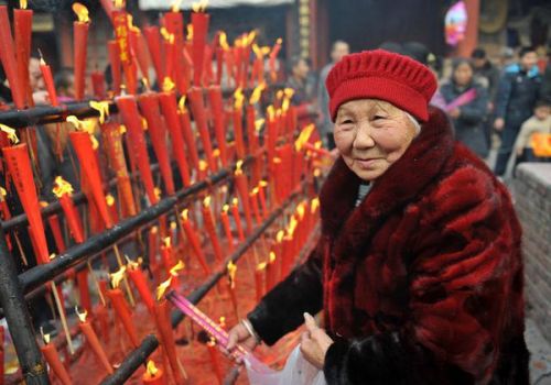 有一位老太太手裡拿著高香,祈禱佛菩薩說: