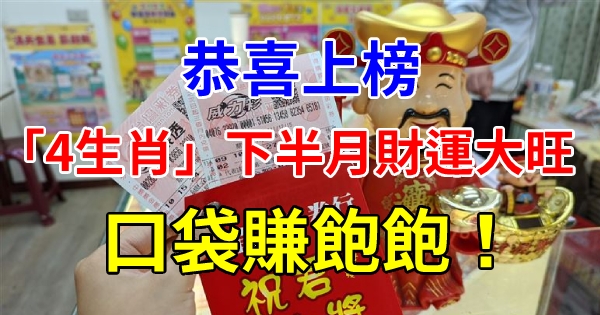 恭喜上榜!「4生肖」下半月財運大旺 口袋賺飽飽
