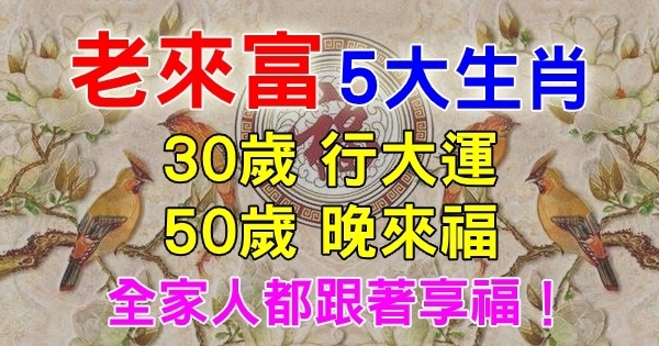 接下來,我們就來看看,是哪「5大」生肖可以在30歲行大運,50歲老來福!