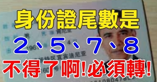快快拿起你的身分證,核對一下尾數,下列數字中有沒有你喔~~