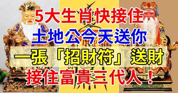 如果有一個財運旺盛的人,那麼其身上的富貴財氣也能傳遞給家人,並且要是你家有與神仙有緣的生肖,那著家人就發達了,就像下面這5個生肖,福德正神庇佑,財神送財,苦難貧窮不沾邊,子孫三代能富貴。