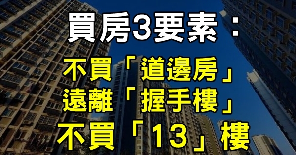 買房講究多,不買「道邊房」,遠離「握手樓」,不買「13」樓。
