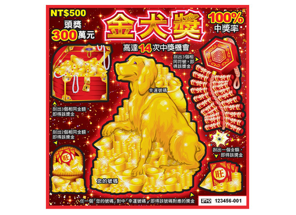 已經有1個被抽中,另一個售價500元的「金犬獎」刮刮樂,