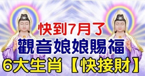 快7月了觀音娘娘賜福,同時他們身邊也會出現良多貴人,也會獲得賞識,運勢天然一起上升,到時分想不富都難。