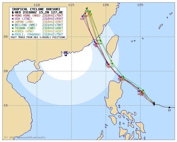 ▼周日晨各國官方預報都預估,杜蘇芮可能登陸。