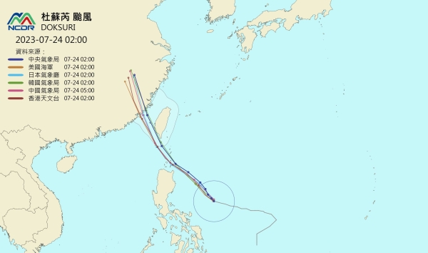 ▼今晨各國官方預報顯示,杜蘇芮不登陸了。
