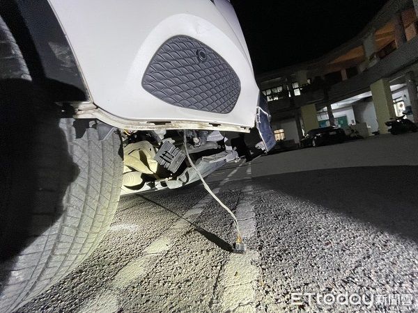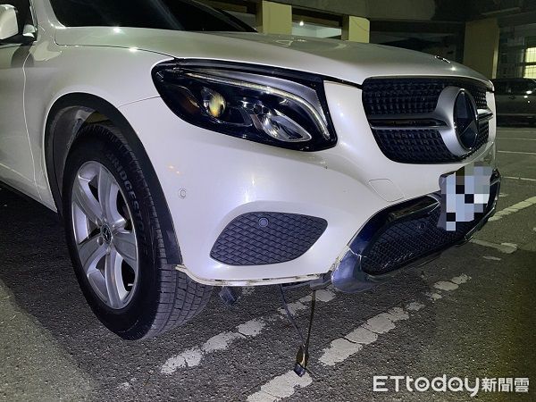 ▼▲葉男的賓士車有明顯撞擊損壞痕跡。(圖/楊梅警分局提供)