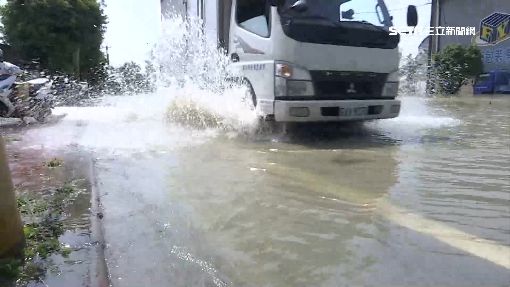▲貨車經過濺起大量水花。