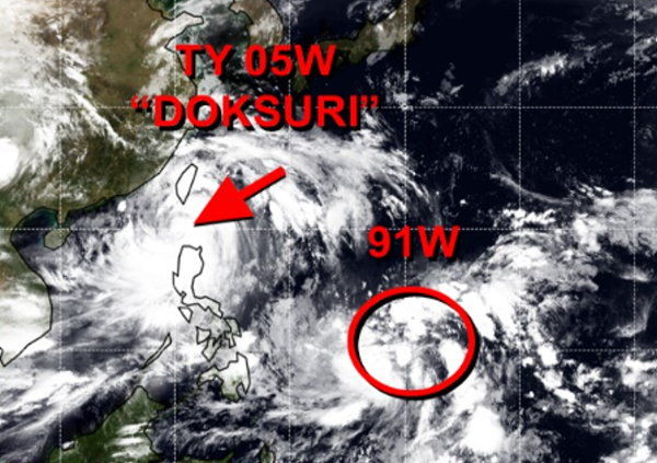 ▲目前西北太平洋上有一個杜蘇芮颱風,還有一個熱帶低壓(91W)發展中。