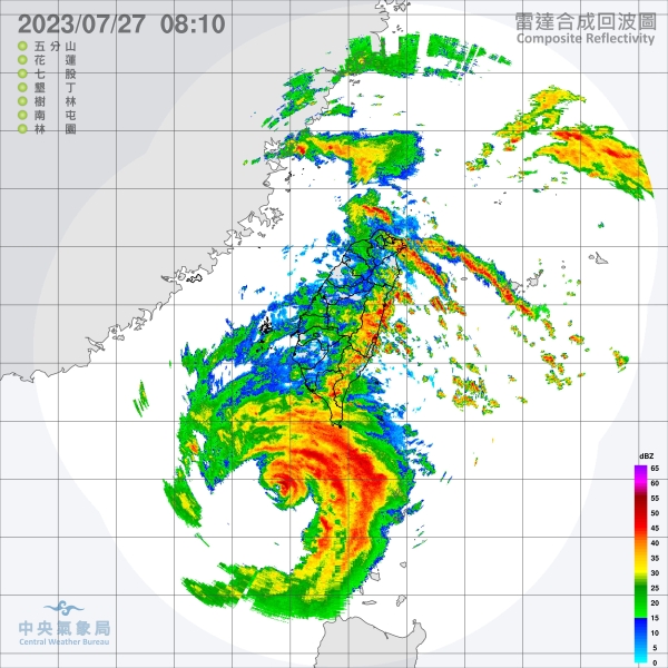 颱風暴風圈已籠罩台灣南部、東南部陸地,