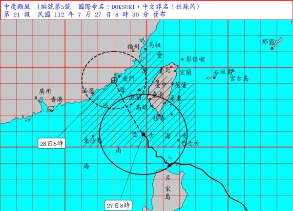 杜蘇芮今晨6點中心位置在鵝鑾鼻南南西方約190公里之海面上,