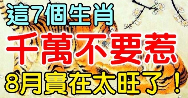 虎年出生的朋友之前一段時間受到午火克子水之局的影響,所以很多人工作努力但大多賺的血汗錢, 8月第一天審辨官得「文昌」吉星庇佑,運勢開始攀升,家中多有添丁添福之喜,今年好運相伴,有福享有錢花。