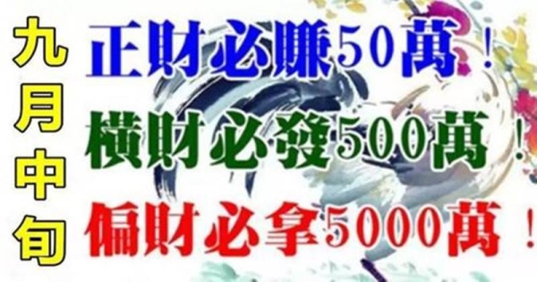 9月中旬財神賜福,橫財遍地,喜事連連,得金得福,大富大貴,在財神和福星的照顧之下,財源不斷桃花朵朵,往後的日子也會更加的順利。