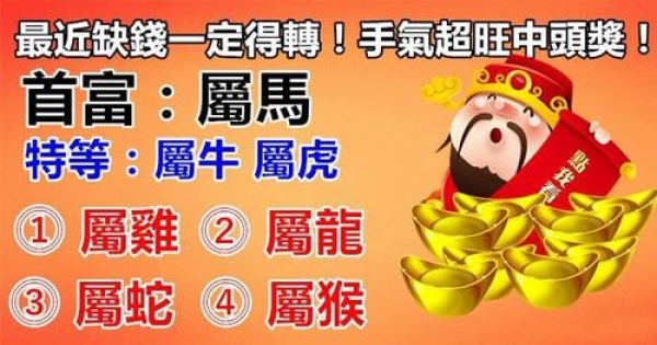 屬馬的朋友在雞年屢屢破財,錯過了不少獲得橫財的機會。雖然事業比較不順利,但是天降橫財的事情在今年會一回生、二回熟、三回四回做朋友。屬馬的人一切運勢都會轉好,財運好運都圍繞著屬馬人,前途一片光明,財運亨通,生活質量也會不斷提高。