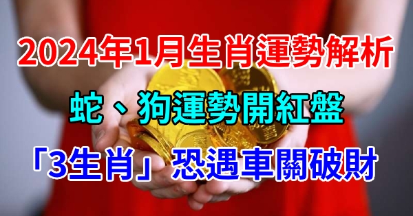 國曆1月份,生肖蛇和生肖狗的朋友將迎來運勢紅盤,財運和愛情運都呈現向上趨勢。